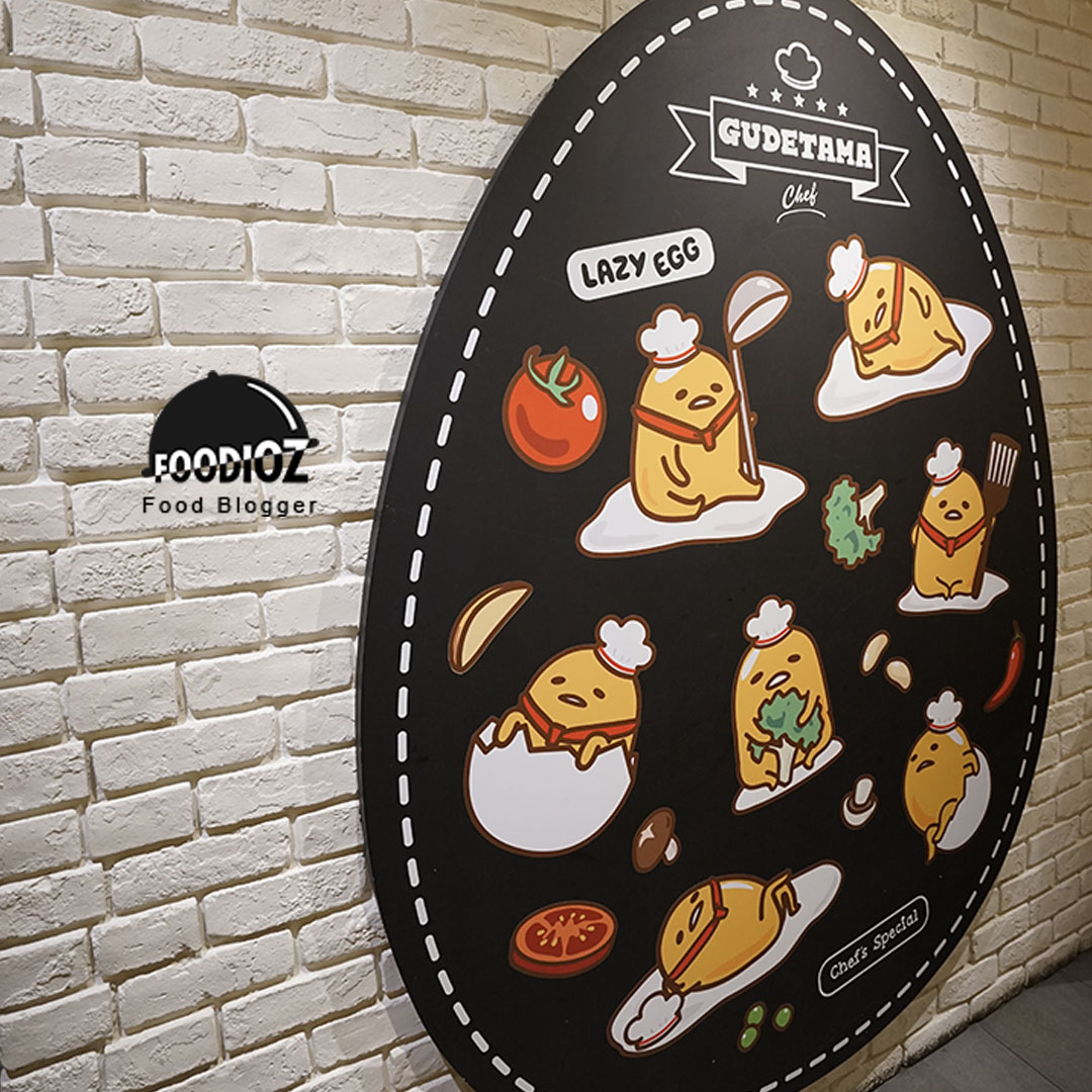Pada saat jam makan siang, kafe ini cukup ramai dipadati pengunjung. Menu yang ditawarkan cukup variatif, makanan-makanan fusion modern dengan bentuk Gudetama yang lucu dan unik. Tersedia makanan pembuka, makanan utama, penutup hingga cemilan-cemilan.