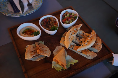 Set menu ini lengkap dari Appetizer, Menu Utama dan Dessert. Tersedia 3 pilihan dengan varian hidangan yang berbeda. Kali ini aku mencoba Feast Set 3 dengan appetizer: Hummus, semacam selai gurih yang dibuat dengan kacang Timur Tengah. Lalu Babaganuc, olahan terong yang dipanggang hingga smoky dengan rasa yang segar. Gavurdagi Salatasi, ini merupakan salad khas Turki dengan aneka bahan seperti timun, paprika, tomat, minyak zaitun, kacang dan lain-lain. Gozleme Mini, roti pipih isi ala Turki yang gurih. Chicken Borek, ini juga salah satu appetizer favorit ala Turki, pastry dengan isi daging ayam.
