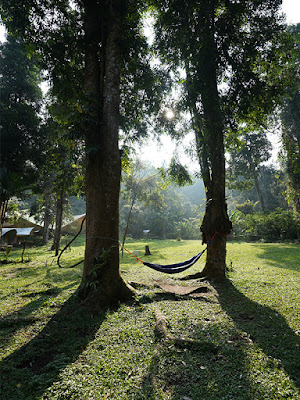 Disini juga tersedia air panas berhubung cuaca yang cukup dingin apalagi ketika pagi dan malam hari. Hanya saja cuaca disana cenderung hujan dengan intensitas tinggi sehingga kabin terasa lembab, hingga lantai kayu terasa basah. Jika kalian memilih unit Halimun di area sudut glamping maka tersedia spider web jaring-jaring dari tali tambang dan kita bisa bersantai di atasnya sambil menikmati suasana hutan.
